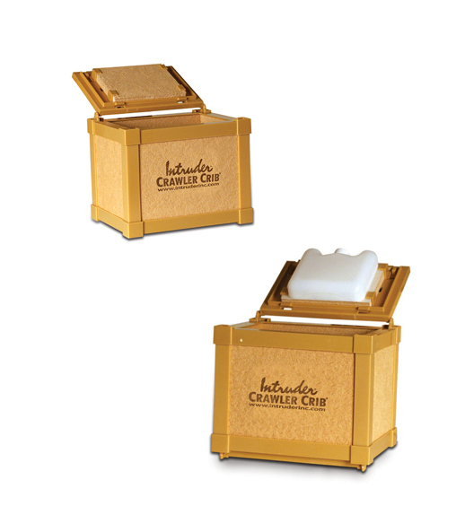 Intruder's complete line of Crawler Cribs keeps bait cool and contained. A combination of breathable walls and fortified bedding ensures worms stay livelier longer. Some cribs are equipped with a chiller bottle to keep bait fresh on those hot summer days.